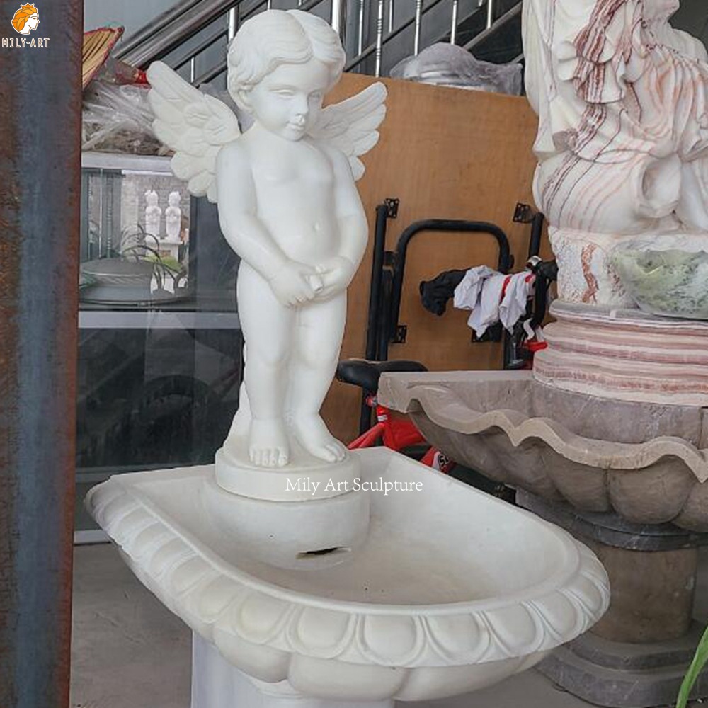 <<As a professional marble fountain manufacturer, Mily offers personalized customized services. You can customize a variety of styles, colors, and sizes, including winged cherub and various basin shapes.