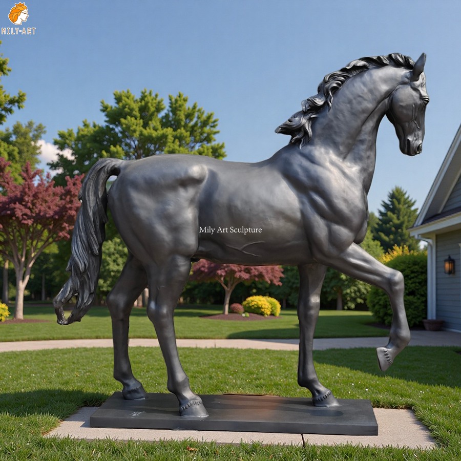 Mily’s bronze black horse sculptures offer a luxurious and profound appearance, are durable, and can be customized in life-size or large sizes with fast worldwide shipping.