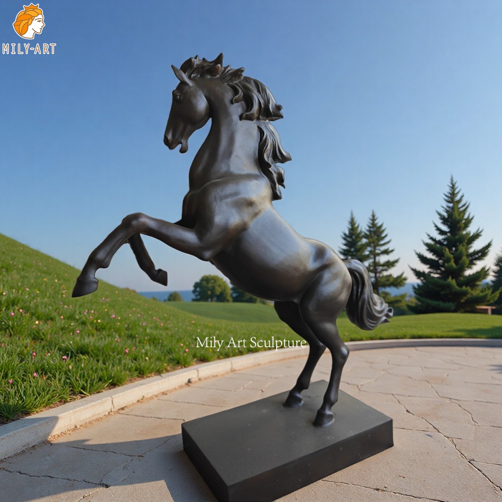 The rearing bronze black horse sculpture was cast by Mliy factory artists using the lost wax method. It culdes hand-polished, welded, and chemically colored. Each process is meticulous and rigorous, ensuring the sculpture’s high quality.