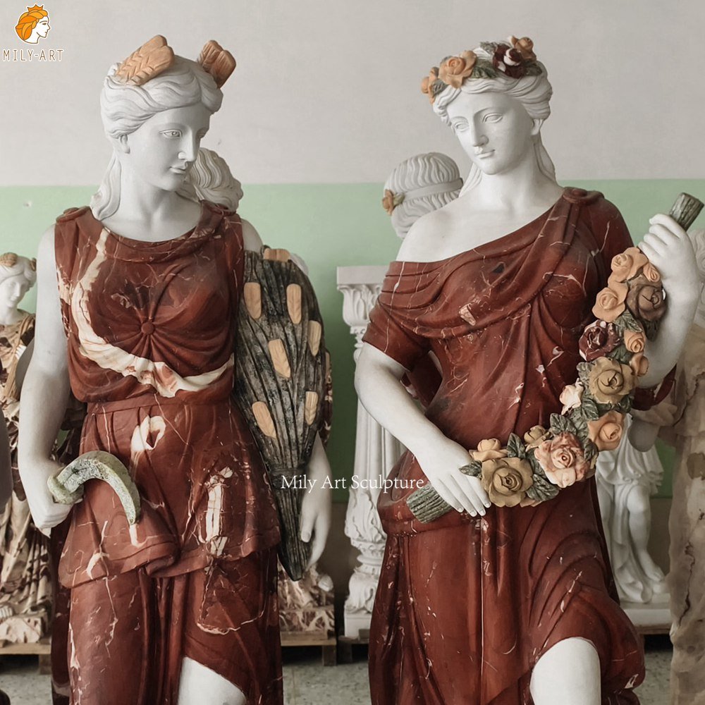 >>This set of marble sculptures of the Four Seasons will surely catch your eye compared to the common white ones. If you place them in your home, they will undoubtedly impress your guests and neighbors with your refined taste.