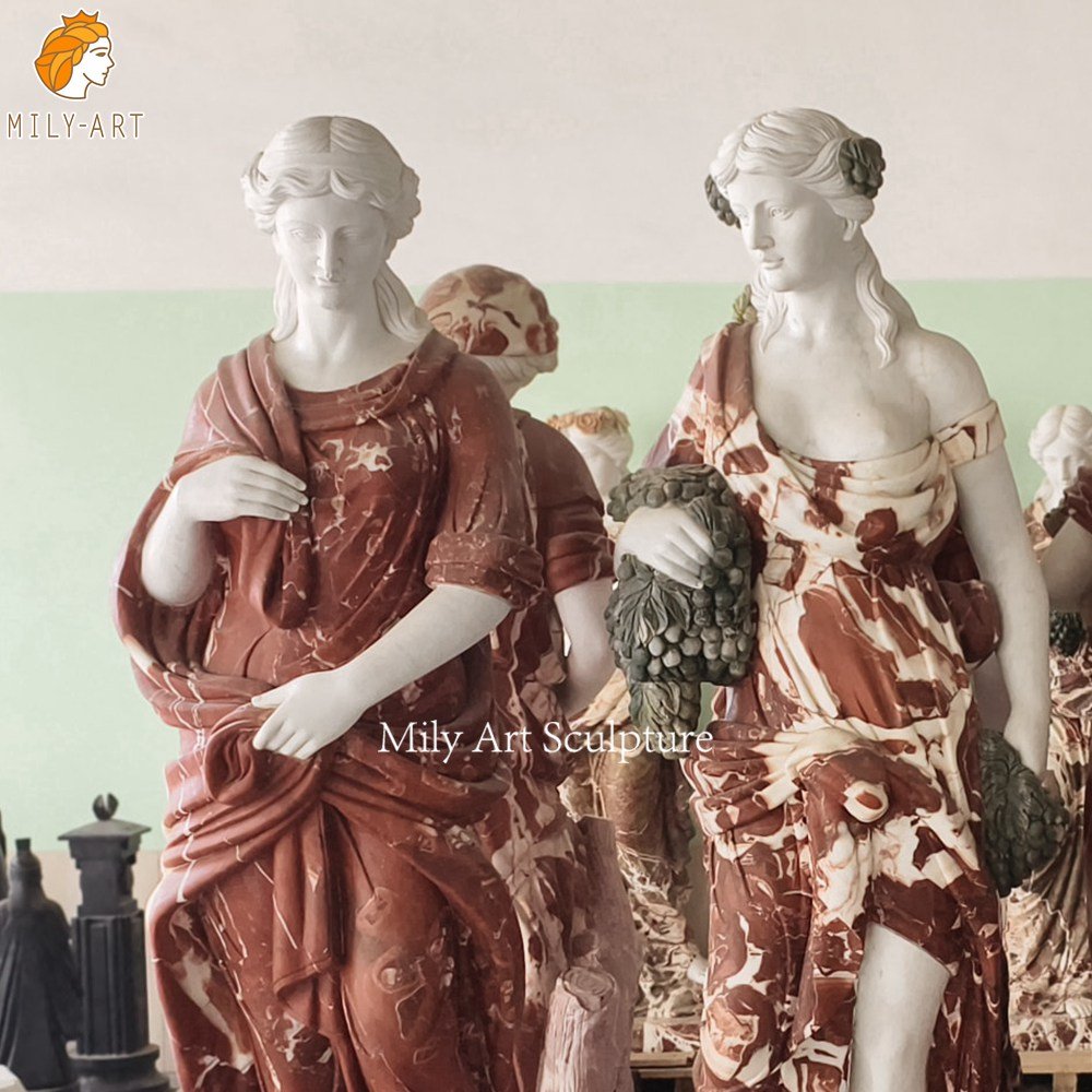 The set of beautiful marble sculptures of the Four Seasons is available for stock and can be shipped within 7 days, making them perfect for outdoor decoration in gardens, courtyards, and swimming pools.