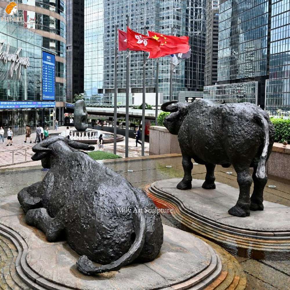 >>This bronze stock market bull statue, located in Hong Kong’s bustling commercial district, was created by British sculptor Elizabeth Flink. It symbolizes diligence, resilience, and prosperity, aligning with Hong Kong’s image as an international financial center.