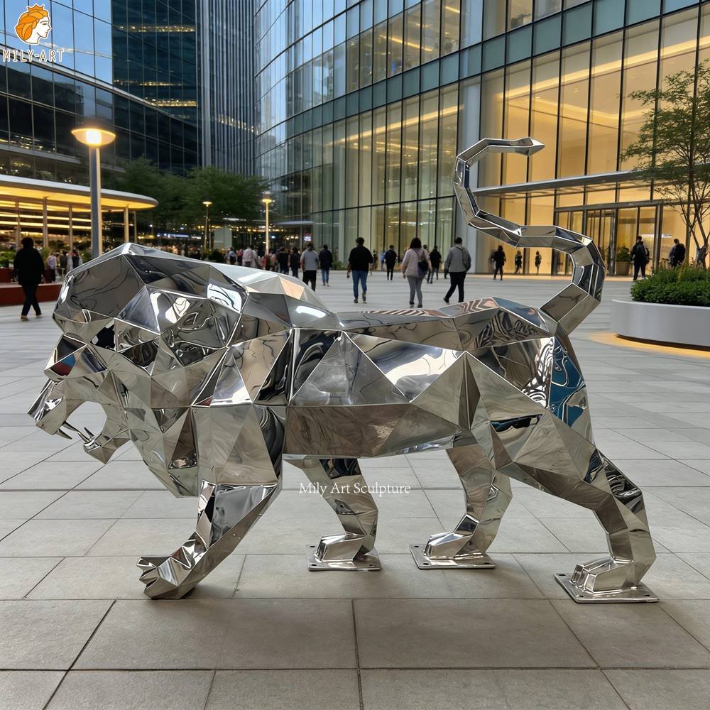 <<The low poly statue boasts exceptional weather resistance, requiring virtually no maintenance when displayed outdoors to retain its mirror-like luster over the long term. If you are interested, please feel free to contact us directly; we look forward to the opportunity to collaborate with you.