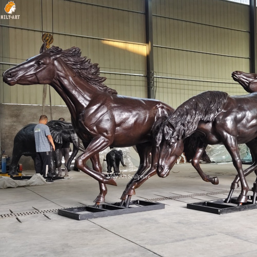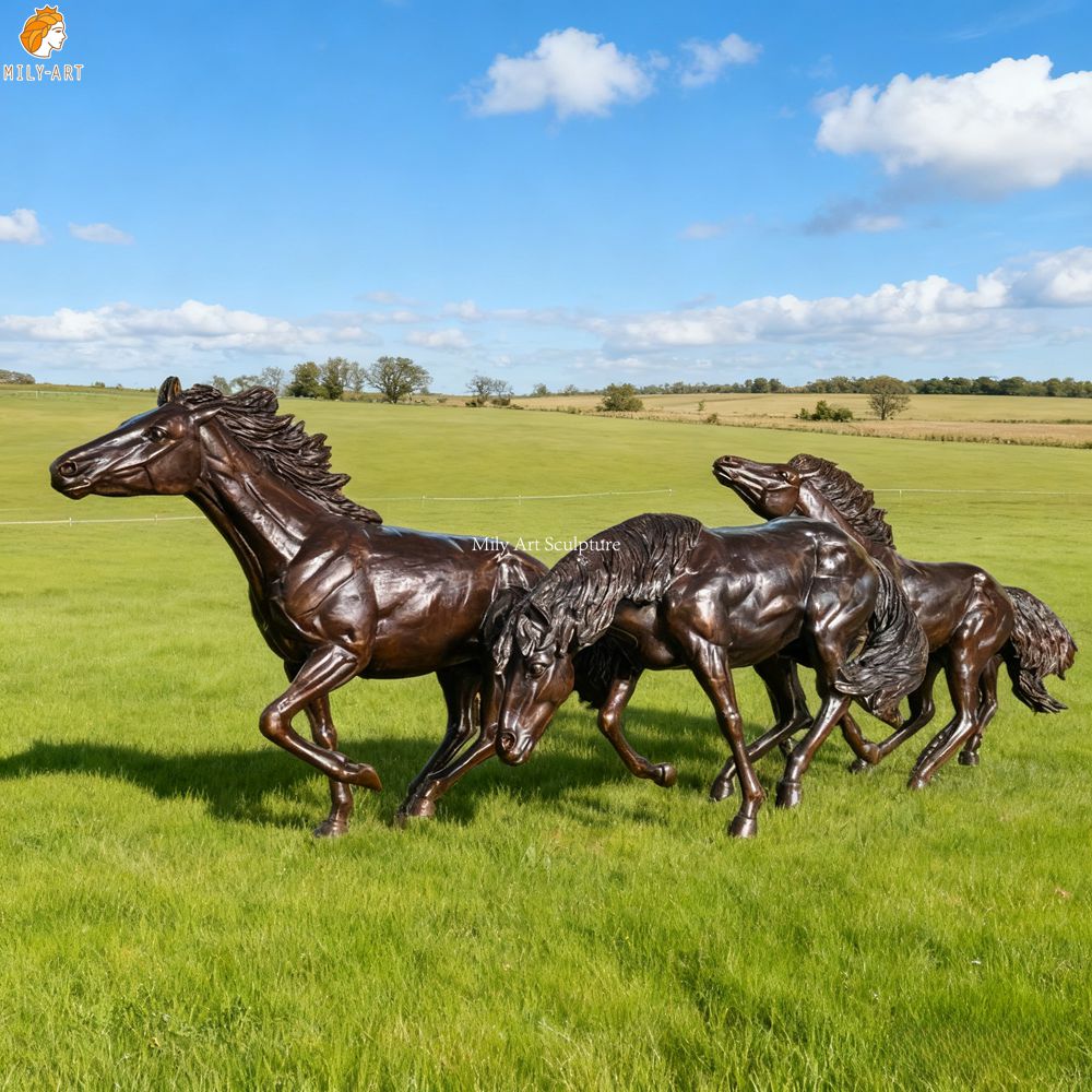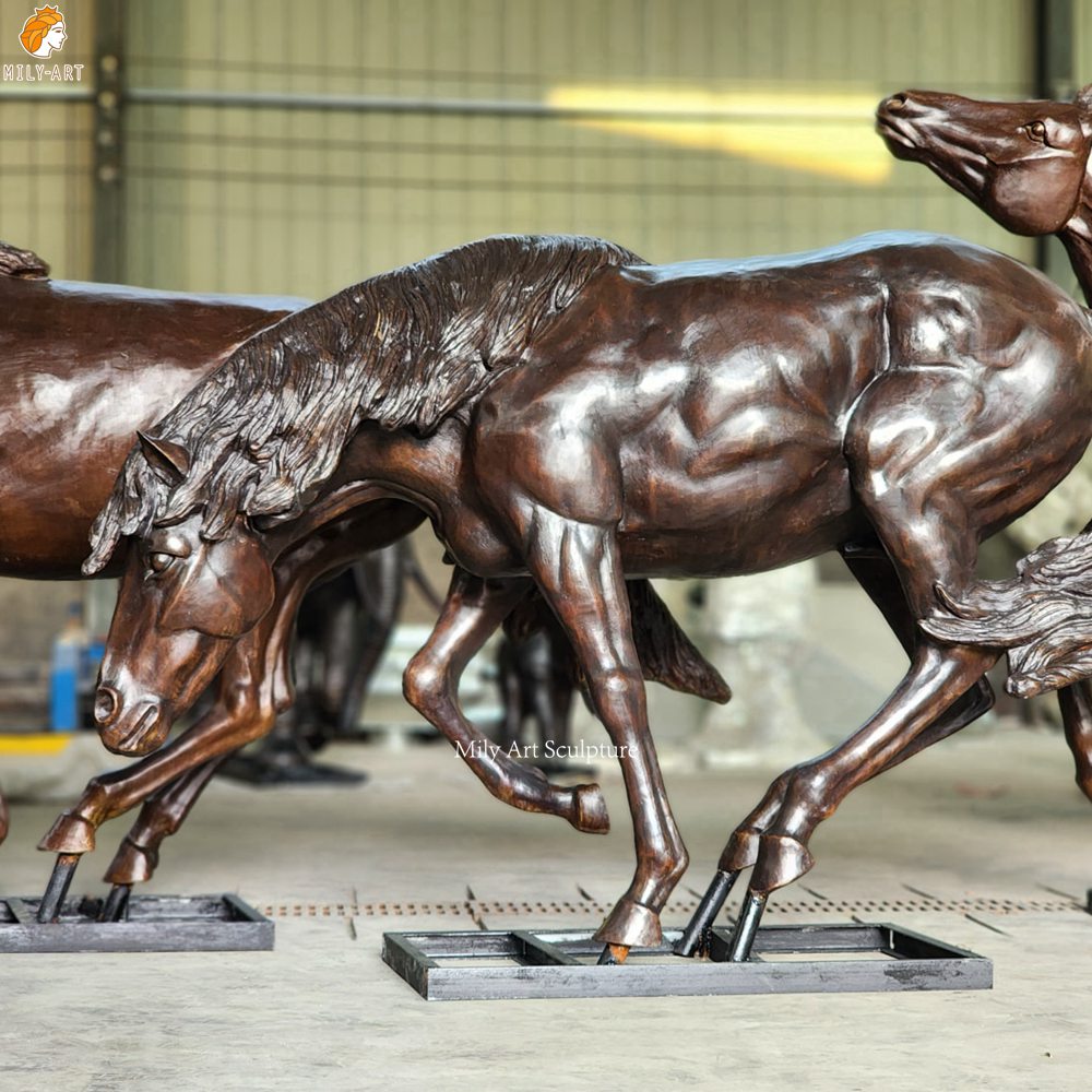 Mily’s bronze stampeding horse sculptures are customizable in different colors, sizes, and quantities. Factory direct sales, worldwide shipping.