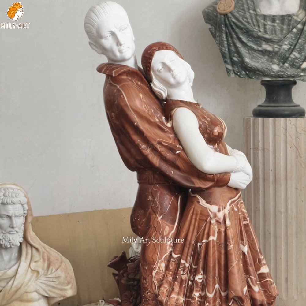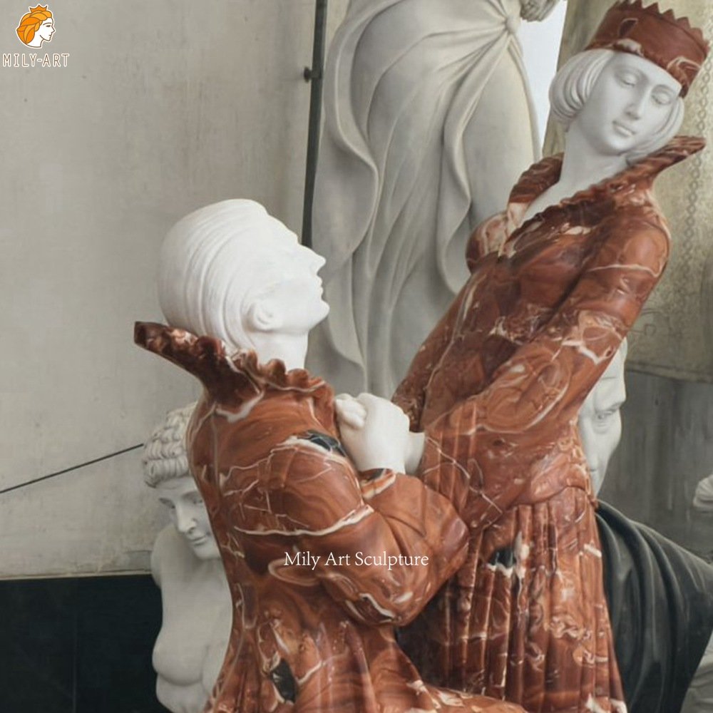 >>Both sets of marble dancer sculptures are life-sized and feature rectangular, blood-red bases. These bases highlight the sculptures and also provide support and stability, ensuring safe placement.