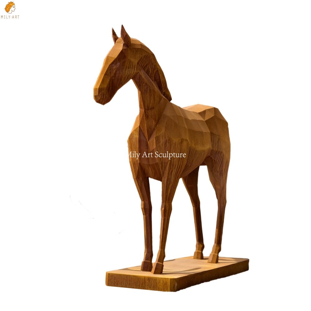 Geometric-style Corten Steel Horse Sculpture for Garden
