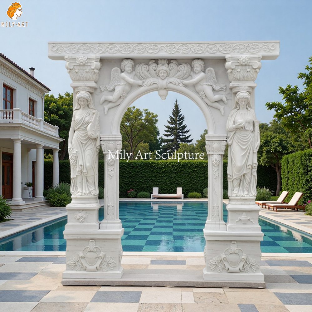 >>Outdoors, this marble archway can serve as a backdrop for weddings and other ceremonies, providing a convenient backdrop for photos. Indoors, it can be paired with crystal chandeliers and classic furniture to create a palatial living scene. If you are interested, please feel free to contact us!