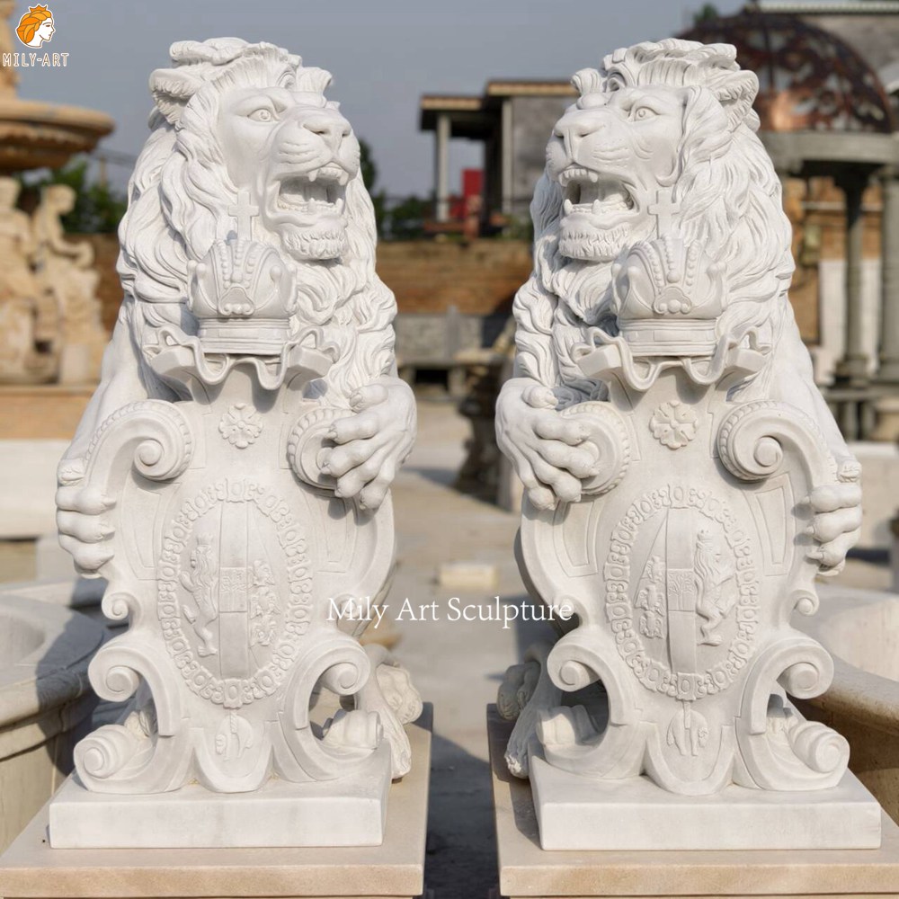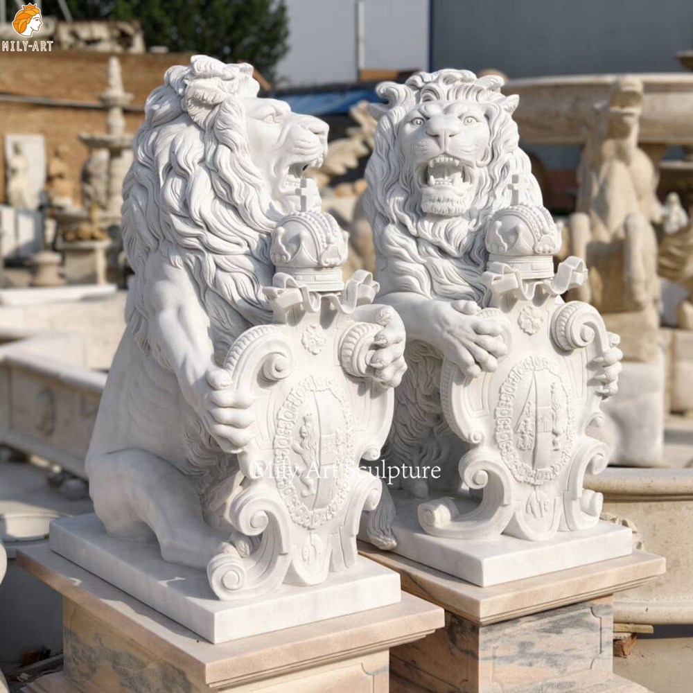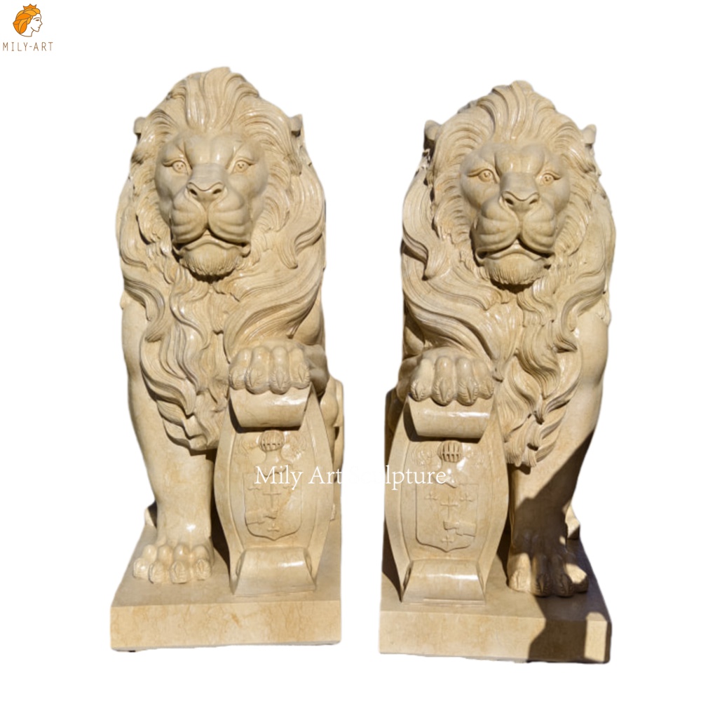 >>In addition to marble lion sculptures with paws resting on shields, you can also choose other styles of shield lion sculptures, such as those with both paws holding a shield. For more styles or customization details, please contact us.