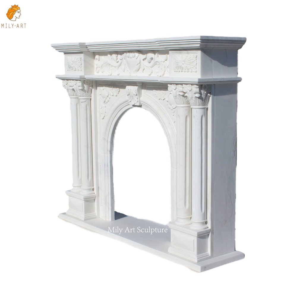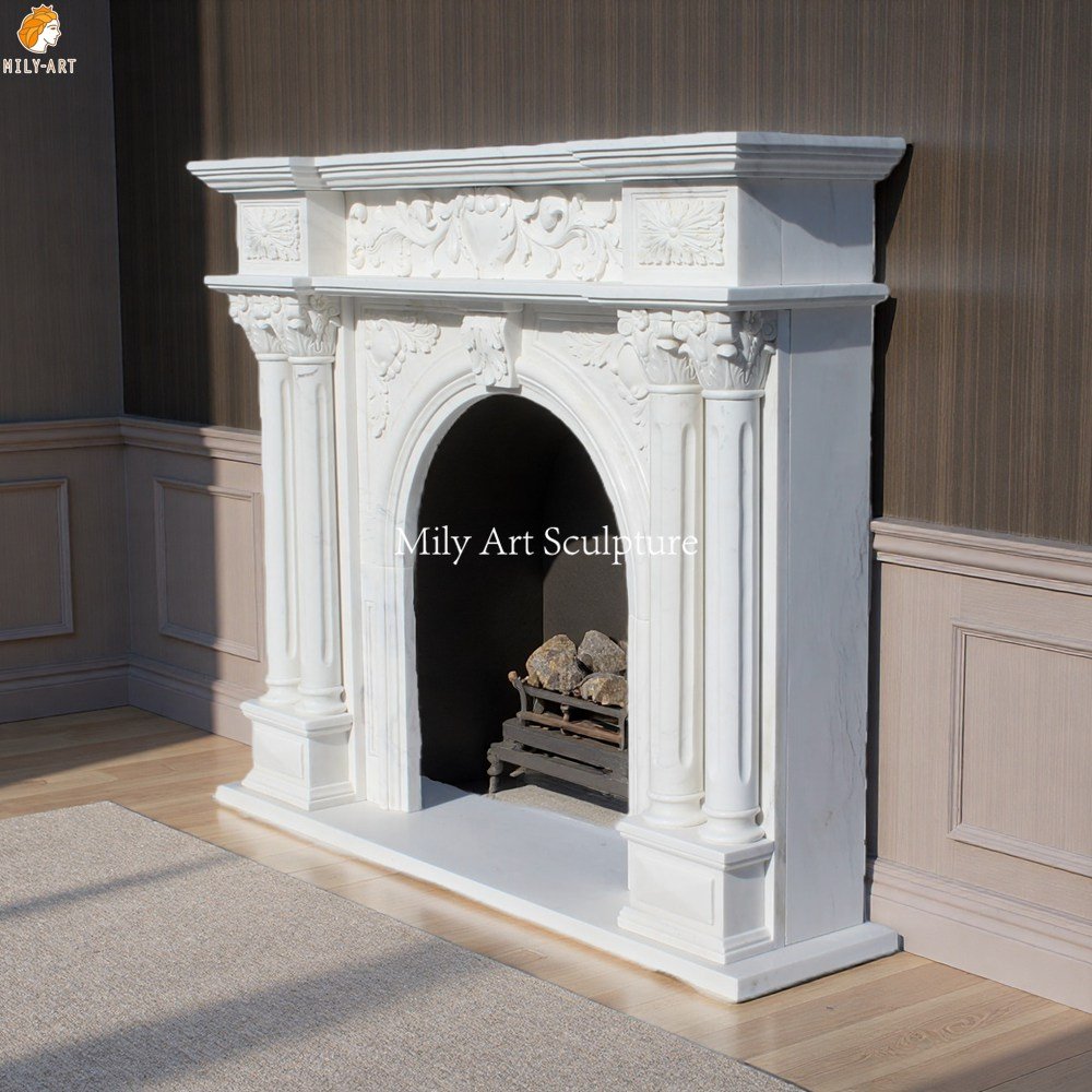Stunning Arched Marble Fireplace with Columns MLMS-407